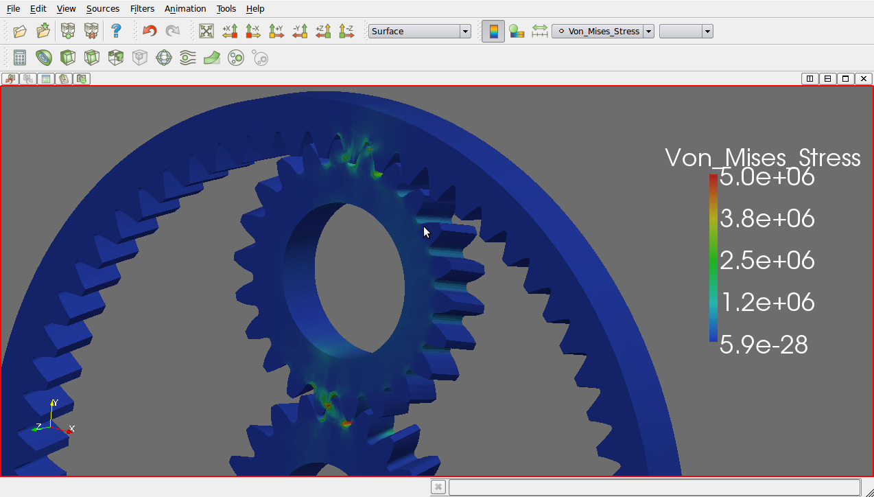 This image comes from the application developed by Konstantinos Poulios which is freely available at http://sourceforge.net/projects/gggears/. It is based on GetFEM and is intended to be a tool for easy, almost automatic, creation and calculation of gear transmissions.
