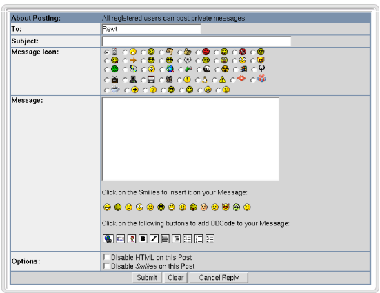 The text that can be equipped with emoticons (emotional icons) and an aid for formatting the message in HTML adding Hyperlinks, emphasized words, bullet lists etc...