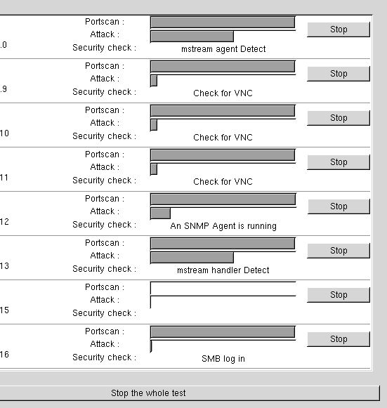 You can also test in two other different ways : the detached scans or the differential scans. This assumes you compiled nessus with the above mentioned "--enable-save-kb" configure option. The detached scans allow running the tests in the background while the differential scans, as the name says, only shows the differences between two scans.