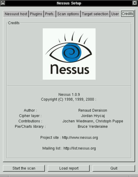 Last but not least, the seventh tab opens the credits window containing as well the version number. That shows all the information you should provide when using nessus for a different project... Well, that's the way it should be !