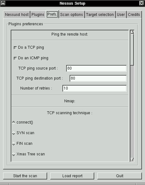 The third tab allows you to define the preferences for the plugins. This concerns ping, TCP, FTP... Here you can fine tune the way you'll use nessus to scan the target host(s) or network.