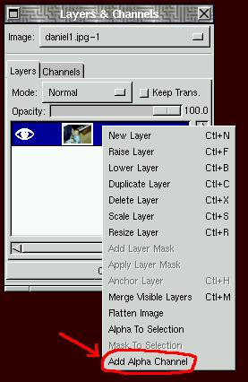quelques options. Celle que nous voulons utiliser est "Add Alpha Channel"