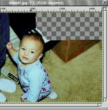 part, GIMP montre qu'une partie de l'image est transparente en affichant