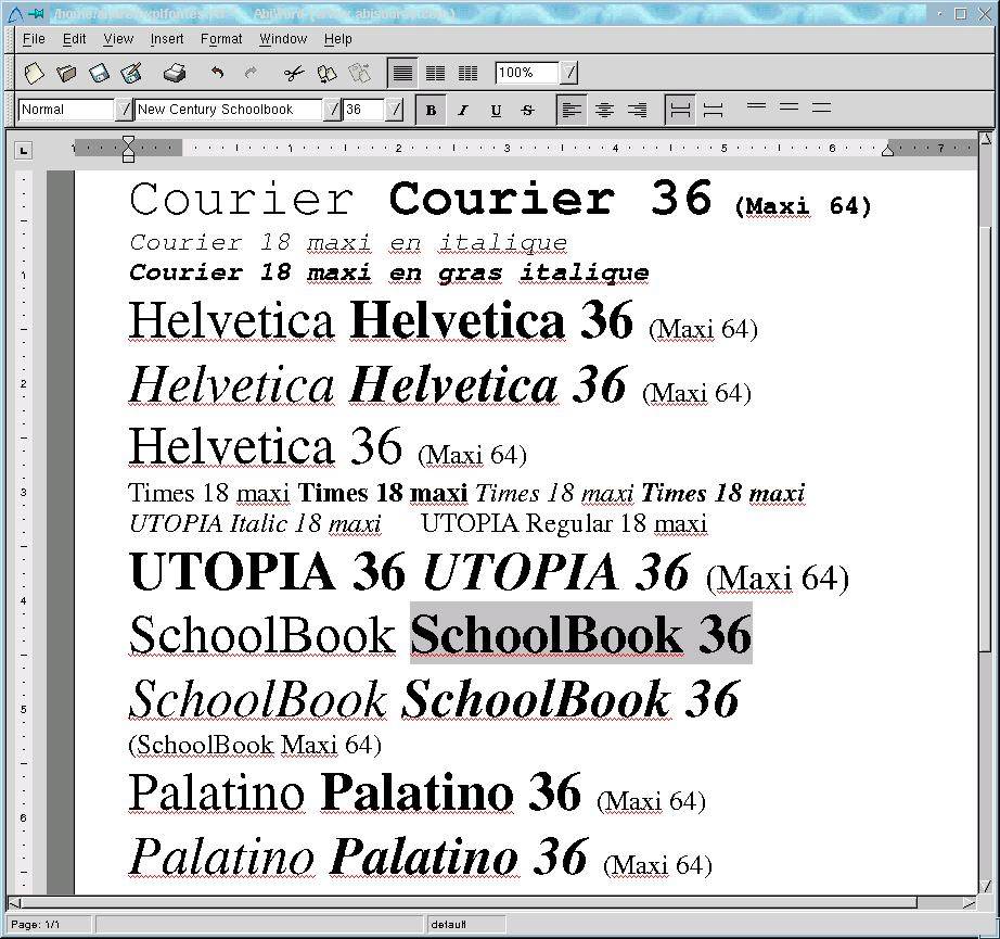 Ik kon het niet laten de beschikbare lettertypen te gebruiken in een RTF-bestand om te zien hoe de andere programma's met het document om zouden gaan. Afbeelding 4 toont het document geopend in AbiWord. Vergelijk het maar eens met hoe Ted het doet in afbeelding 3. Indrukwekkend.
