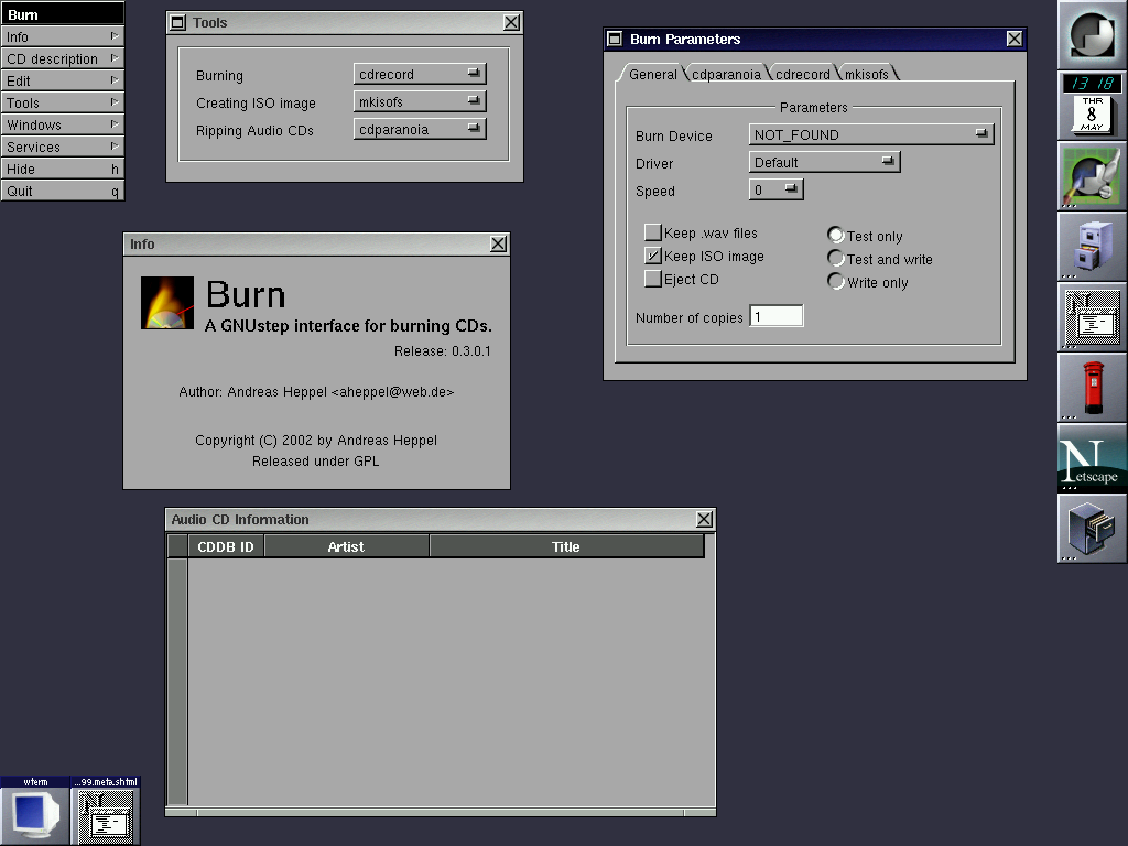 Um Burn.app nutzen zu können, muss CDPlayer.app ebenfalls installiert sein,