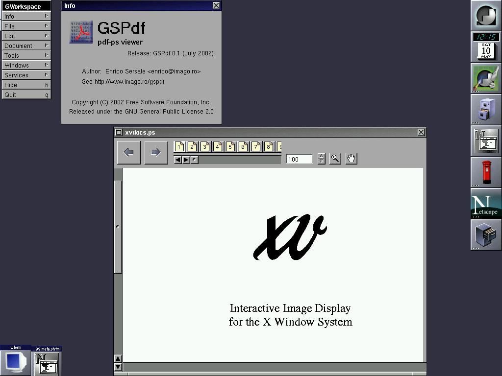 GSPdf ist die Arbeit von Enrico Sersale, dem GWorkspace Autor. Die Anwendung