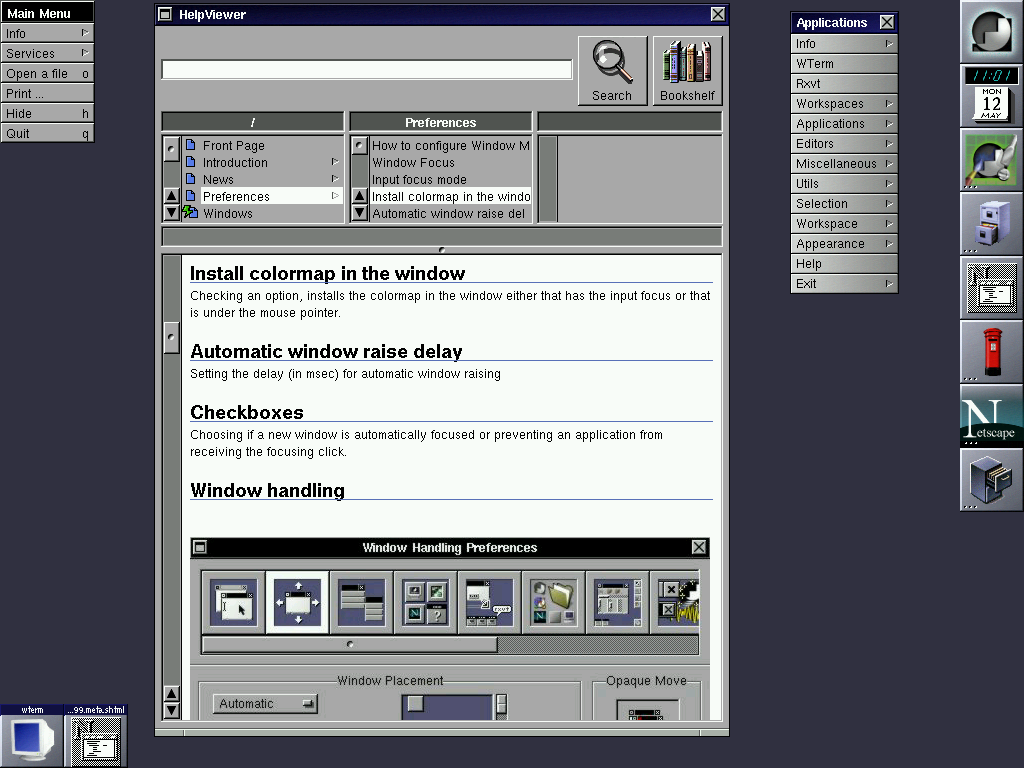 help Erweiterung haben. Unter Window Maker kann man im Startmenu einen Eintrag