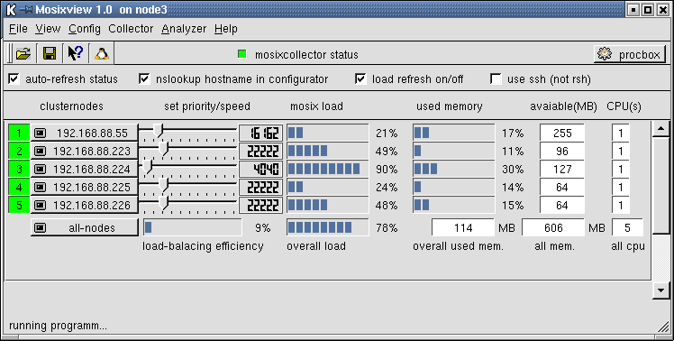 Für die grafische Aufarbeitung stehen MOSIXLOAD, MOSIXMEM und MOSIXHISTORY