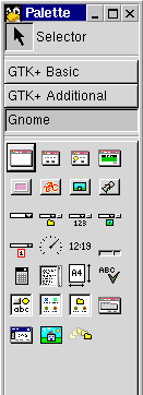 Tous ces widgets sont dans la catégorie Gnome de la Palette.