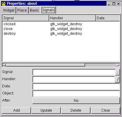 Trois gestionnaires s'auto-connectent à l'interface. Ce sont on_about_activate, on_new_activate et mainquit. Le dernier est en fait une fonction Python qui stoppe et quitte Python.
