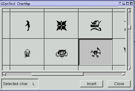 menus dans la fenêtre GDyntext. Dans la table de caractères vous pouvez voir tous les