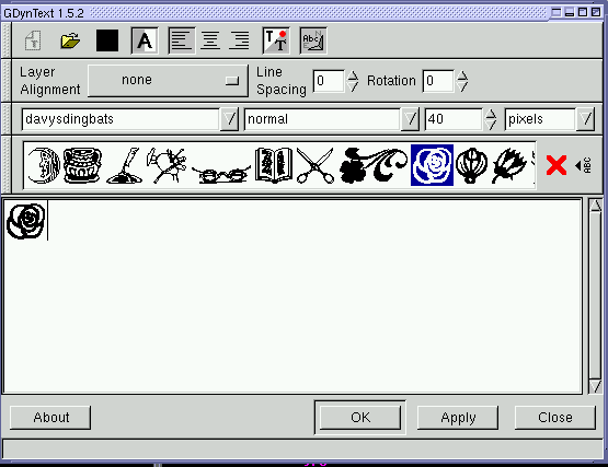 gebruik van het tekst gereedschap in Gimp. Dingbats zijn lettertypen.