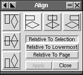 Align: Zet één of meerdere objecten gelijk aan elkaar (met als referentie de zijkant, bovenkant of middelpunt), ten opzichte van de pagina of ten opzichte van de selectie.