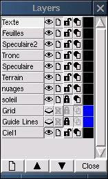 Layers: Lagen vergemakkelijken het maken van complexe tekeningen omdat je zekere veranderingen in een laag kunt blokkeren, binnen een laag de teken-modus aan kunt zetten, een laag-object kan veranderen, lagen anders kunt ordenen...