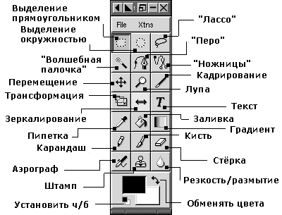 Эта панель инструментов стабильной версии Gimp 1.0.4. Но я Вам